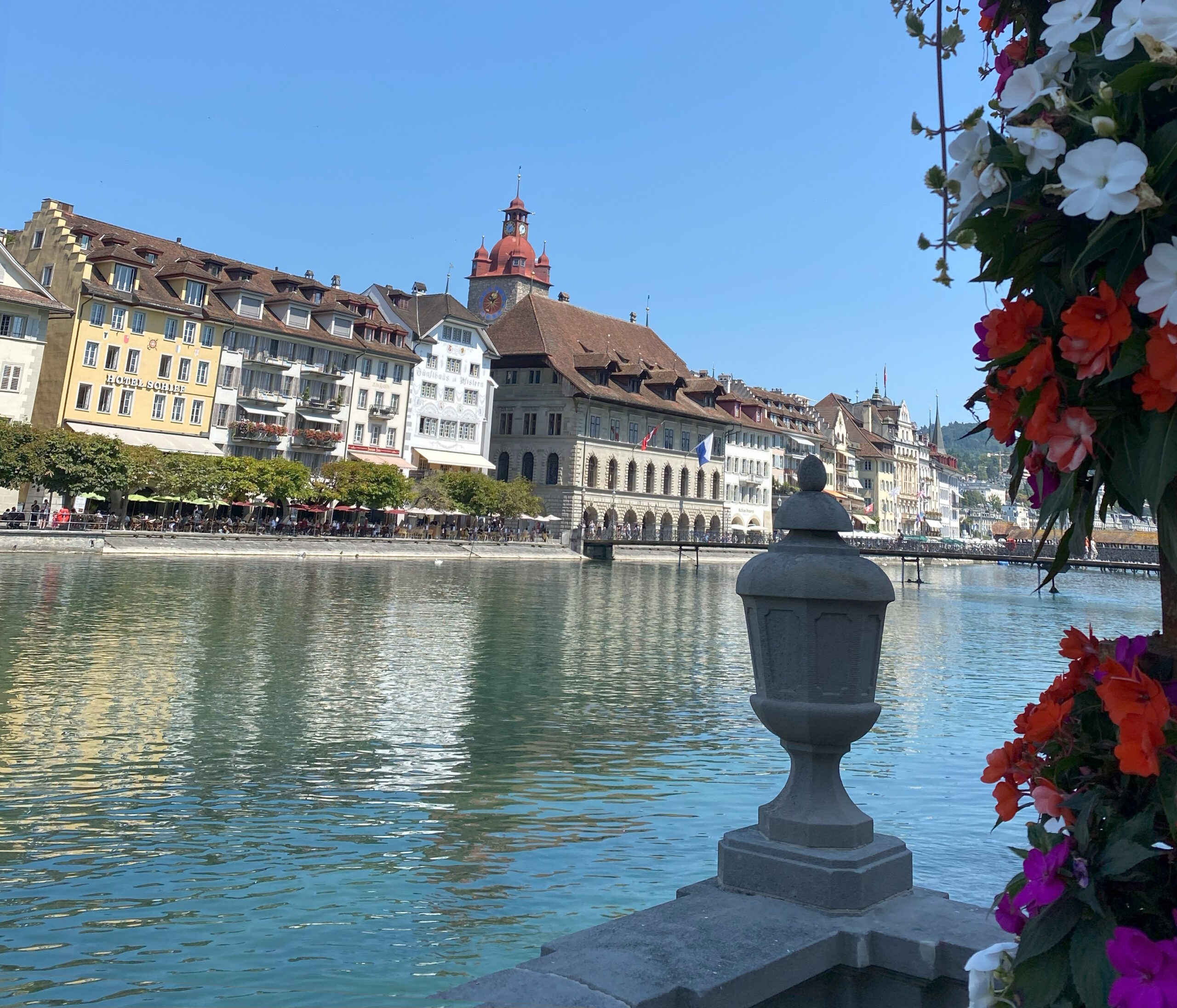 An old balustrade stands above the flowing Reuss, carrying centuries of stories. Draped in blossoms, it frames Lucerne’s historic heart with a touch of living color. Here, the sturdy, eternal stone of the parapet and the decorated facades of buildings meet the energetic force of water, symbolising life, the flow of time, and change. The mortal and ephemeral nature of flowers adorns the scene, of which we eagerly grasp their highest vibrancy in their season of full splendor. A seemingly paradoxical world of harmony in the quarrel between stone and water, eternal and ephemeral, life and death…